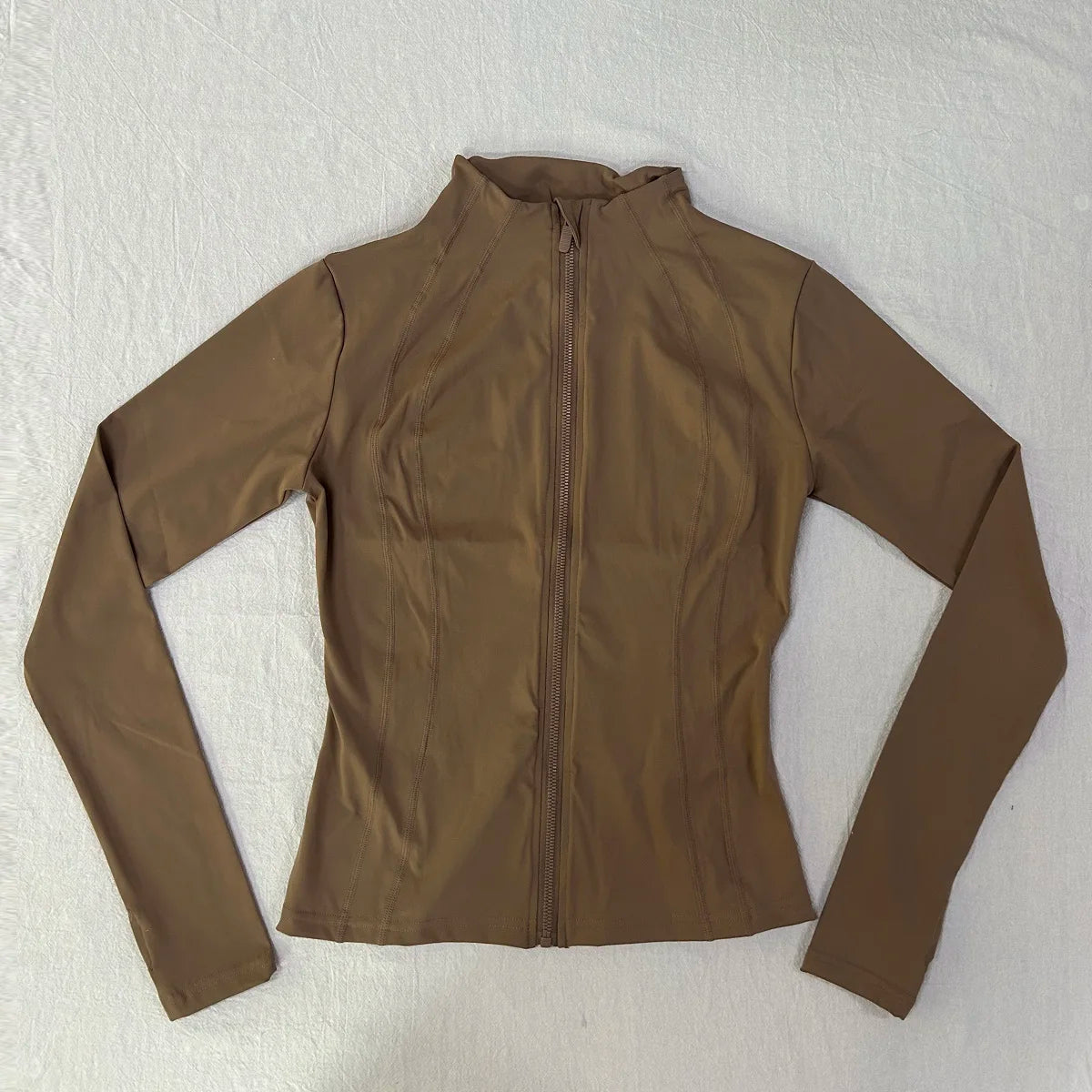 Gym Women's Full Zip Yoga Top With Thumbholes Fitness Running Jacket Stretch Fit Long Sleeve Round Neck Top Sportswear Workout