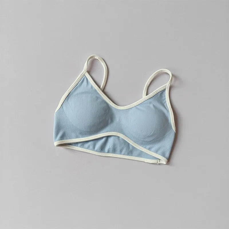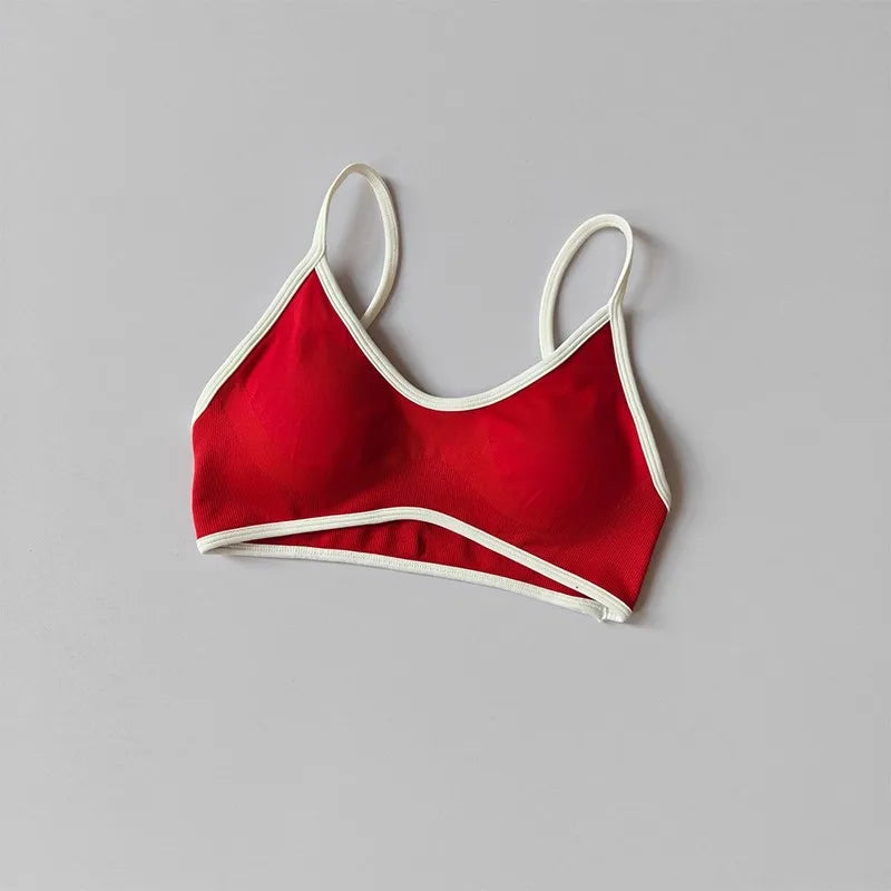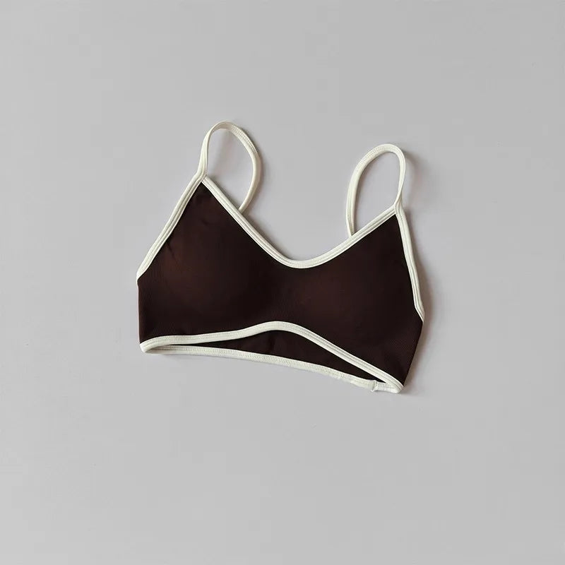 Crafted for both style and performance, this Euro-American inspired yoga bra blends fashion with functionality. The V-neckline flatters a variety of body types, while the high-quality elastic fabric ensures flexibility and support during workouts or casual wear. The contrast trim not only enhances the visual appeal but also highlights the structure of the garment, making it a standout piece in your activewear collection.